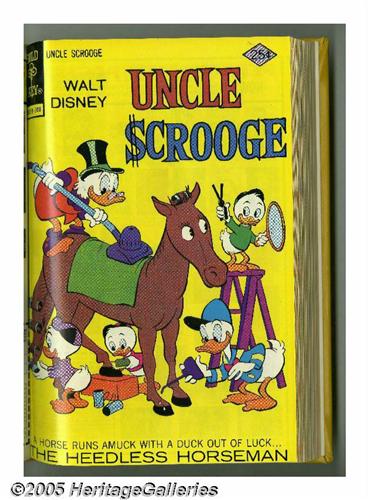 <B>Uncle Scrooge #126-173 Bound Volumes (Gold Key, 1976-79).</B></I> These are Western Publishing file copies which have been trimmed and bound into four hardcover volumes. Approximate Overstreet VG 4.0 value for group = $275. <I>From the Random House Archives.</B></I>