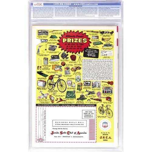 <B>Uncle Scrooge #53 (Gold Key, 1964) CGC NM+ 9.6 Off-white to white pages.</B></I> The only copy graded above 8.5 by CGC as of this writing, this is surely one to pounce on for the serious Carl Barks collector. Overstreet 2006 NM- 9.2 value = $140. CGC census 6/06: 1 in 9.6, none higher. <BR><BR><B>Important notice:</B> Heritage usually auctions material at the rate of 200-250 lots per hour. On some occasions eBay Live bid software or the Internet may not be able to keep up with the pace of the auction. We recommend placing a realistic absentee bid now as insurance to avoid disappointment. Occasionally the auctioneer may eliminate or reject an eBay Live bid, and the auctioneer may also reopen a lot after the close of the eBay live bidding (usually because we missed an audience bid), and may reject your bid even if it shows you as the winning bidder. By bidding via eBay Live, you agree that Heritage may award the lot to another bidder at its sole discretion under the circumstances described above or any other reasonable circumstances. Since eBay bids are not shown to us until we open the lot on the floor, we treat those bids just like floor bids. In most cases the floor responds before the eBay bid is presented to us, due to Internet lag time, so for consistency we have made it a policy that floor bids are always considered first over tie eBay live bids. Also please note that all Heritage lots purchased through eBay Live carry a 22.5% Buyer's Premium. Please make sure you read the Terms and Conditions before you bid. This lot is being auctioned in conjunction with a live floor auction by Heritage Auction Galleries. All final auction and invoice information will be supplied by Heritage Auction Galleries, and all other information should be considered preliminary. Lot:41001 <BR><BR><B>Winning Notification and Billing:</B> After the FINAL session in this auction is complete, Heritage will send e-mail and snail mail invoices. This process normally takes several days. All final auction and invoice information will be supplied by Heritage Auction Galleries, and all other information should be considered preliminary. <BR><BR>This auction will be conducted on a live auction floor and over the Internet through eBay Live. If you choose to place an absentee bid, please take a moment to <font color='#0000ff'><u><a href='http://pages.ebay.com/liveauctions/help/before/laabsentee.html'>learn how eBay Live absentee bidding works</a></u></font><font color='#000000'>
