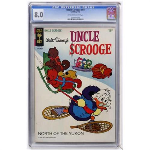 <B>Uncle Scrooge #59 (Gold Key, 1965) CGC VF 8.0 Off-white to white pages.</B></I> Overstreet 2007 VF 8.0 value = $69. CGC census 5/07: 1 in 8.0, 7 higher.<BR><BR><b>Shipping:</b> Comics - Slabbed (certified) (<a target="_blank" href="http://www.heritageauctions.com/common/shipping.php">view shipping information</a>)