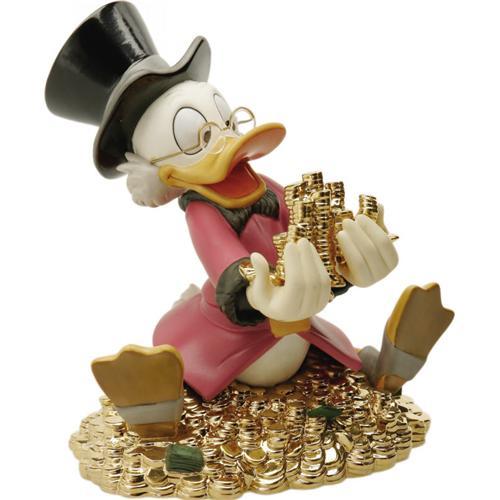 <B>Uncle Scrooge "Money, Money, Money!" Walt Disney Classics Collection Figurine (Disney, 1997).</B></I> The wealthiest citizen in Duckburg, Scrooge McDuck, plays in his Money Bin, counting his money. On this delightful figurine, Scrooge's spectacles are made of brass wire and have glass lenses. The coins were treated with a lustrous metallic paint. A special gold script message that reads, "30th Anniversary, " was added as a the "backstamp" on the figurines crafted in 1997. This edition was "retired" in 2001. Scrooge stands approximately 6" tall, and the figurine is in Excellent condition. An unopened registation envelope is included in this lot, as is the original box.