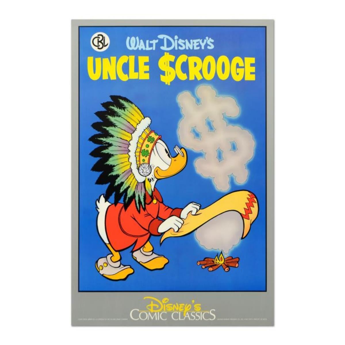 "Uncle Scrooge" is a vintage serigraph on paper from Disney, dated 1987. Includes Letter of Authenticity. Measures approx. 25" x 36" (image). ** Please note: there are creases on the paper. **