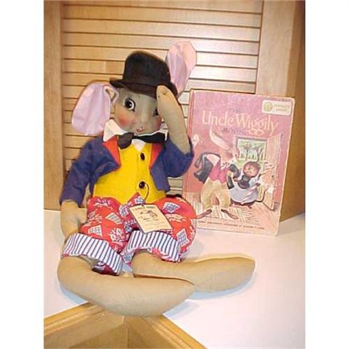 This cloth Uncle Wiggily is in very good condition. He is reasonably clean for his age with no stains, tears, holes or fading. His feet appear to have very faint all over shelf dust but very minor. His tag is attached that tells maker and year of manufacture. The only flaw I could mention is his felt hat is a little out of shape. A steam iron might revive it. He is adorable. I have Aunt Jane and another Uncle Wiggily listed on goantiques.
