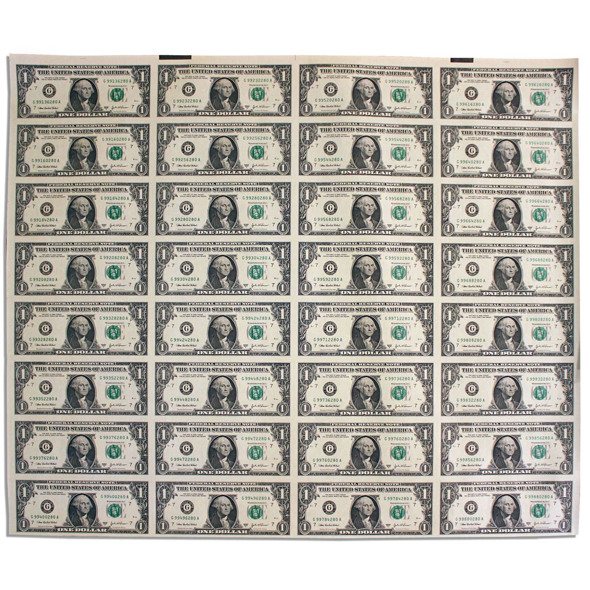 Uncut Sheet of 32 $1 Federal Reserve Notes -- Series 2003-A, Chicago -- Near Fine