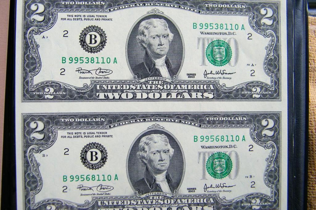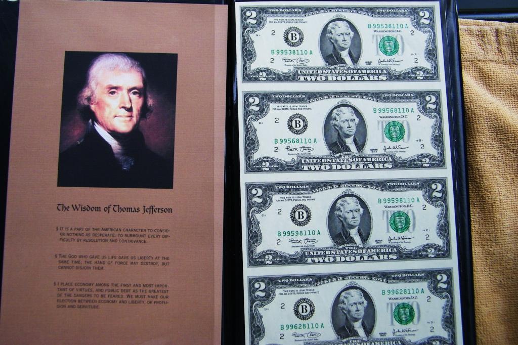 Uncut Jefferson $2 Bills 2003 Series