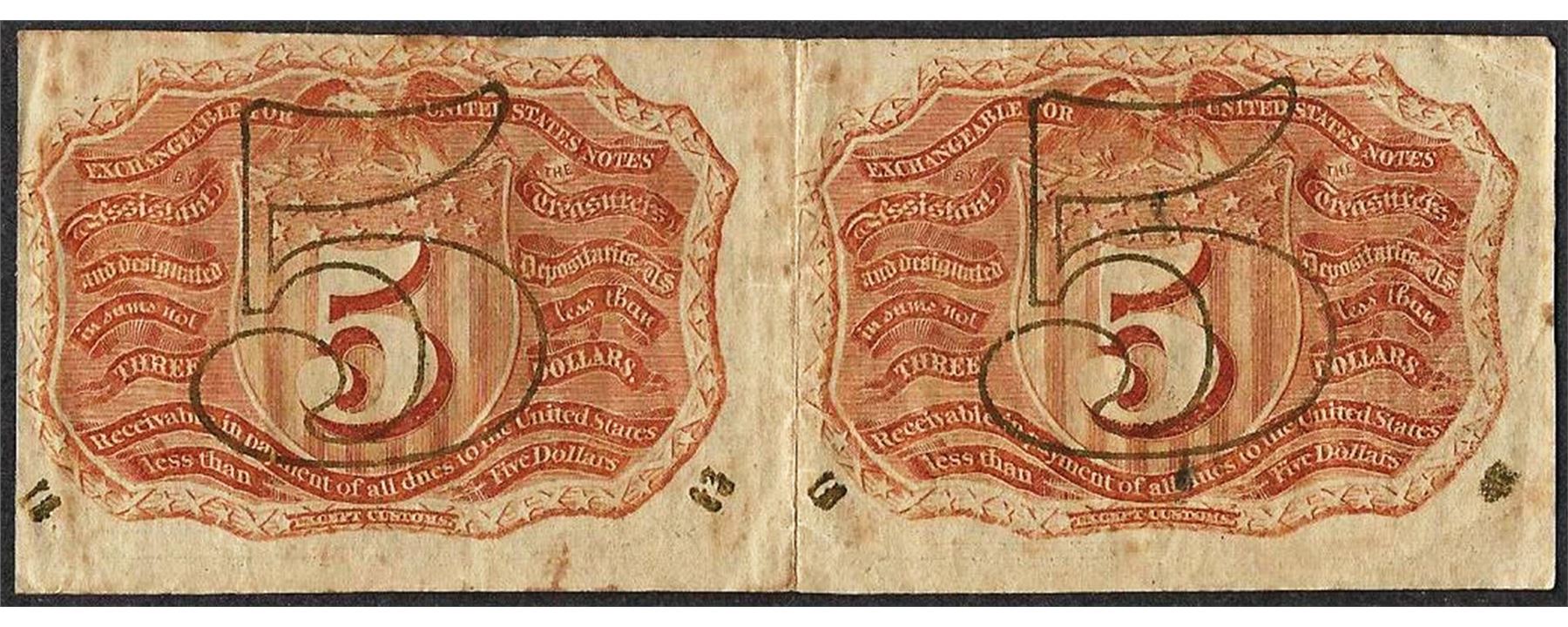 Uncut Pair of March 3, 1863 Second Issue Five Cent Fractional Notes