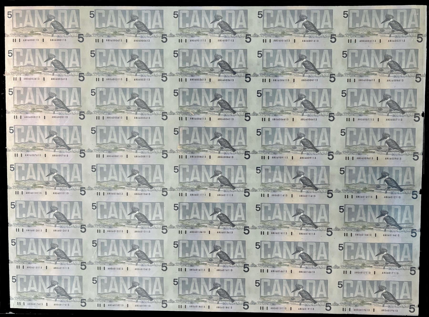 Uncut Sheet; 1986 $5 BC-56e-i #ANU 5 X 8 -BABN- 40 notes Uncirculated