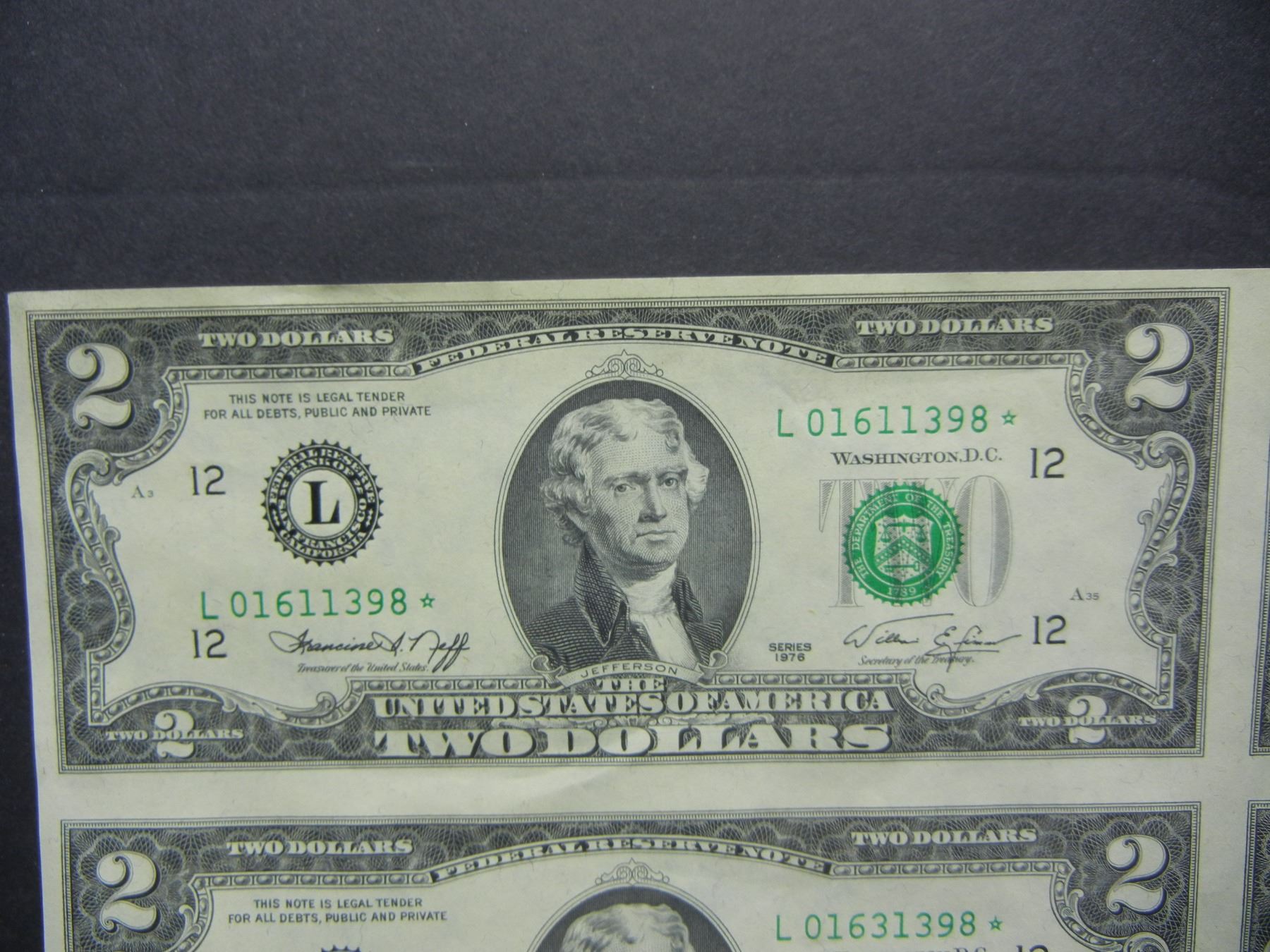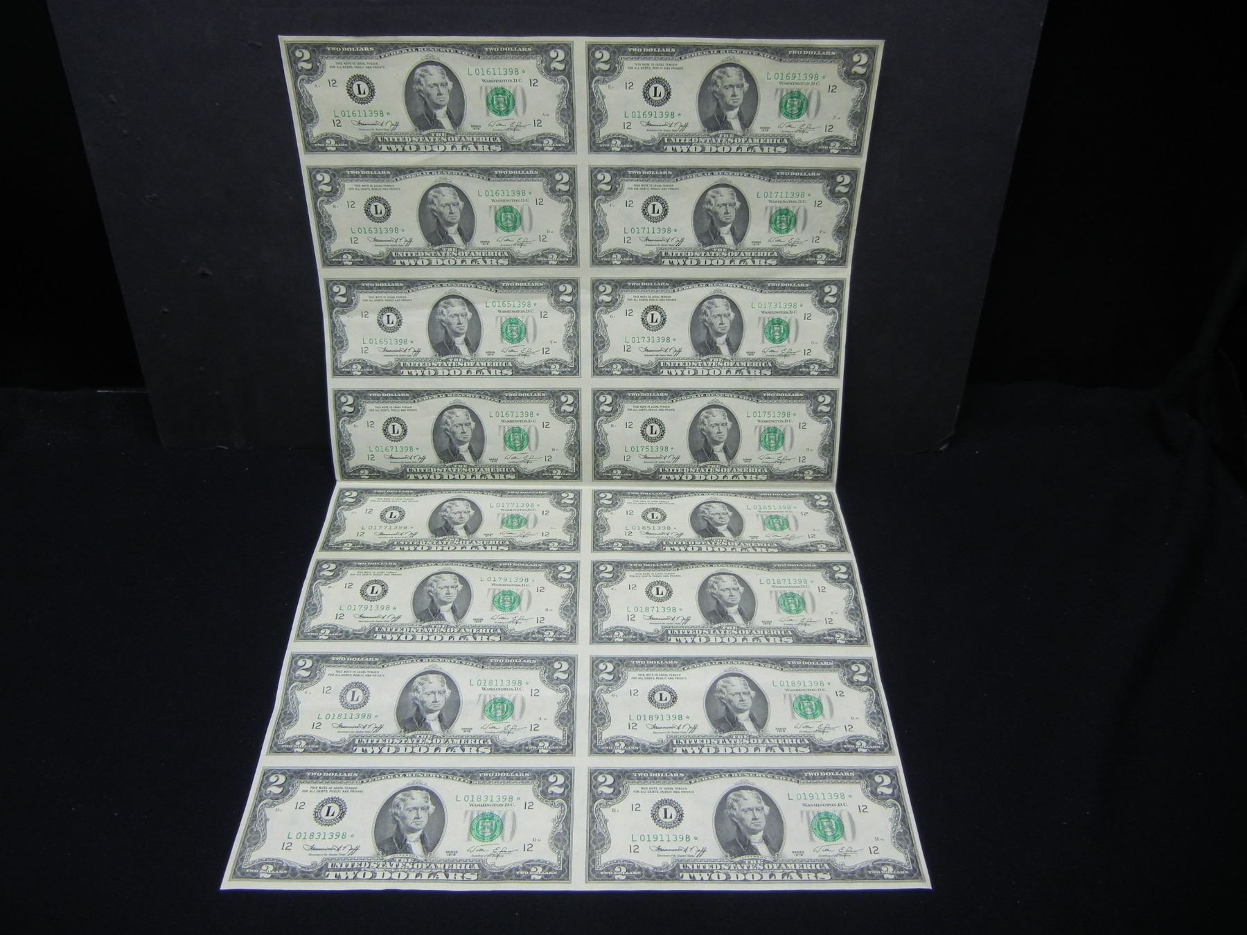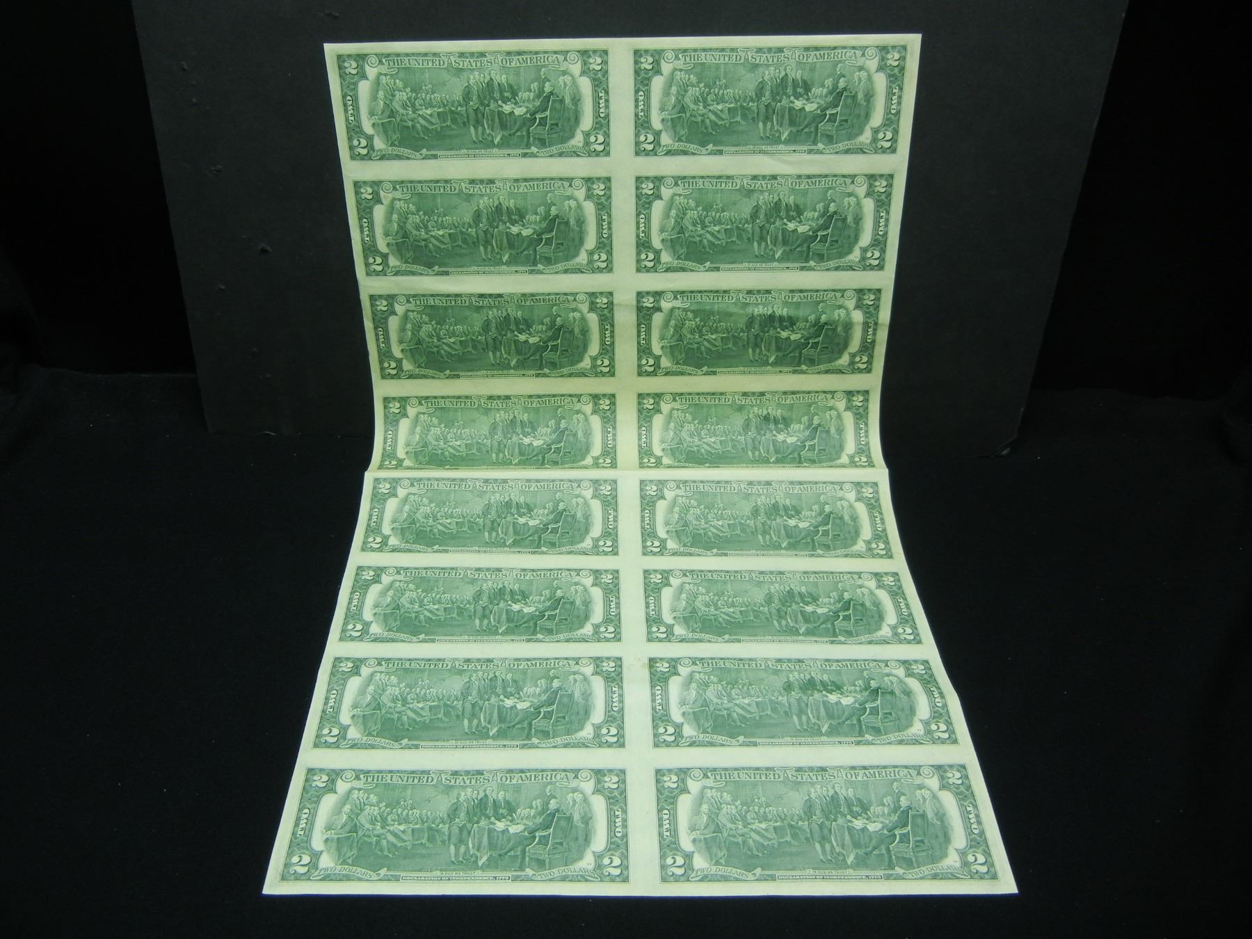 Uncut Sheet of 16 United States $2.00 Federal Reserve Notes
