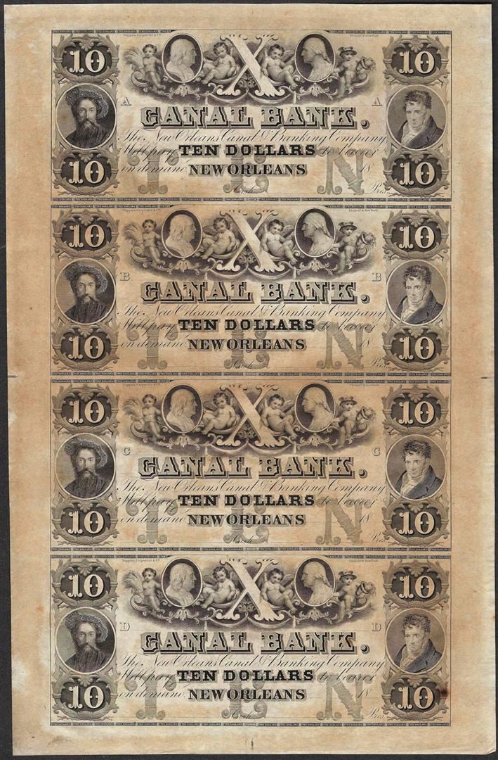 One Uncut Sheet of 1800's $10 Canal Bank Obsolete Notes.