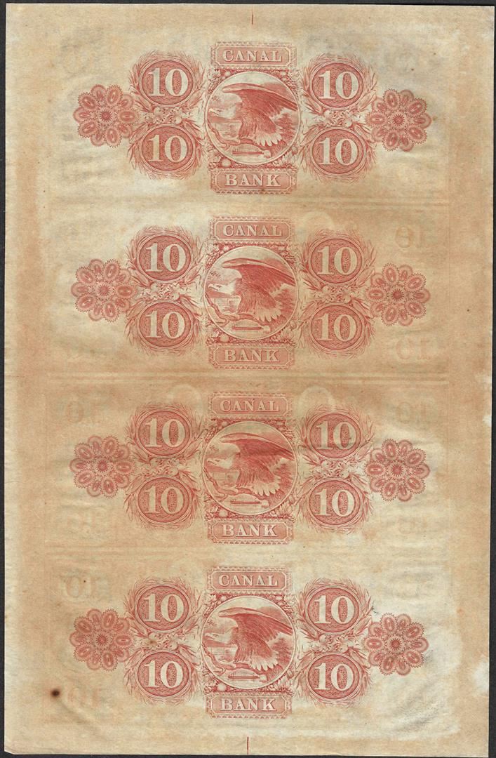 One Uncut Sheet of 1800's $10 Canal Bank Obsolete Notes.