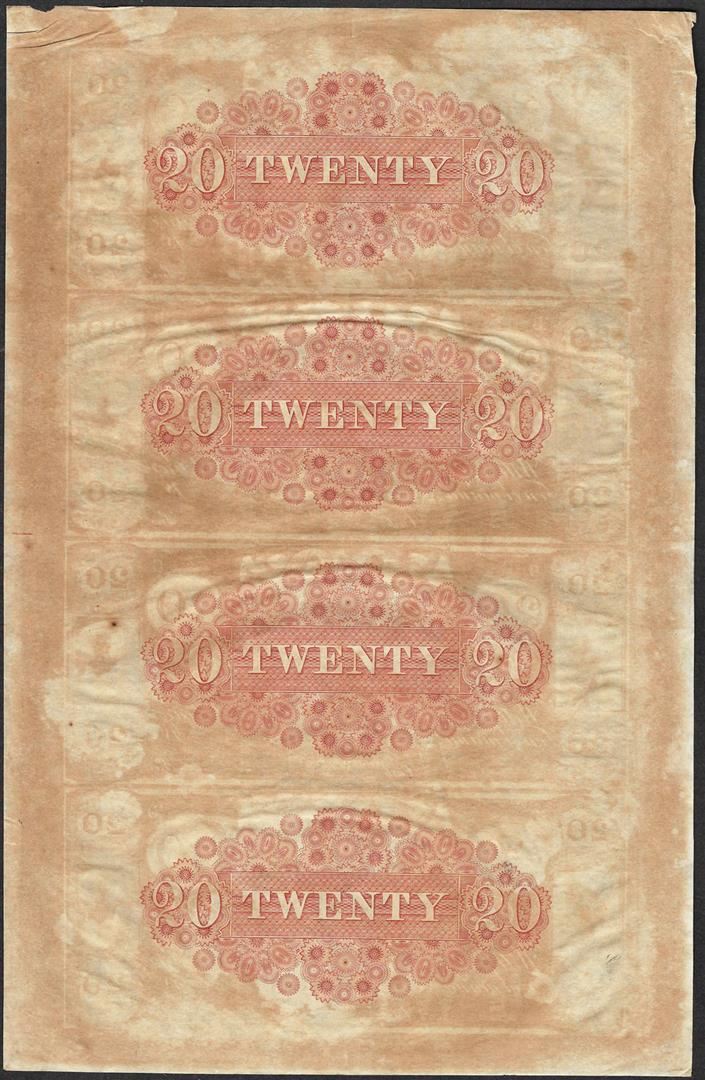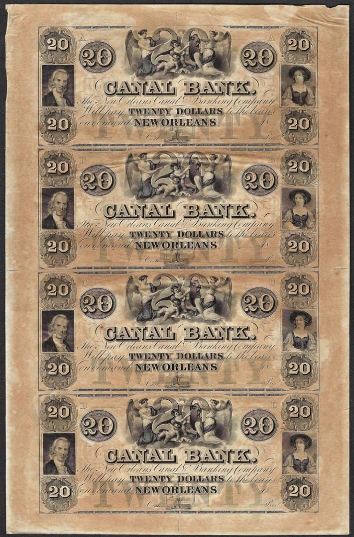 One Uncut Sheet of 1800's $20 Canal Bank Obsolete Notes.