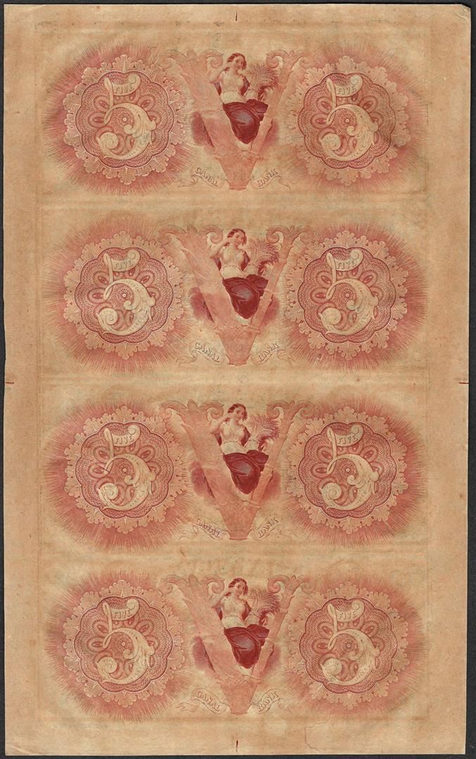 One Uncut Sheet of 1800's $5 Canal Bank Obsolete Notes.