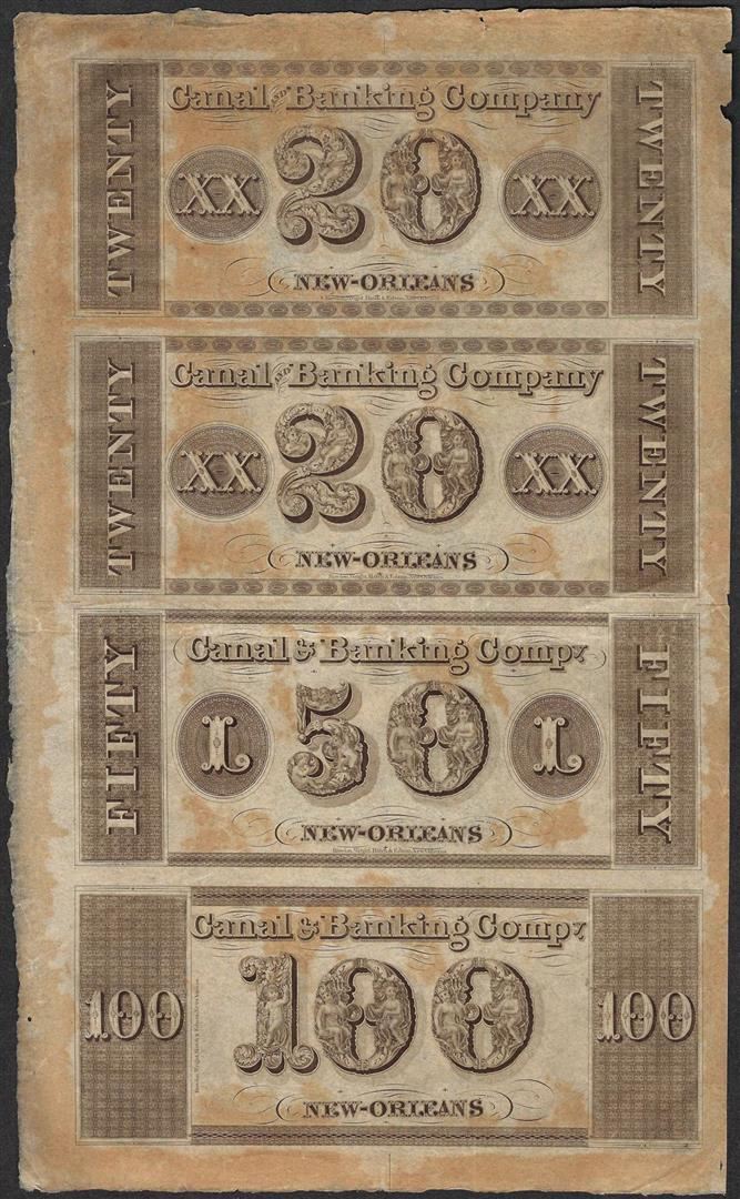 One Uncut Sheet of 1800's Canal & Banking Co. Obsolete Notes.