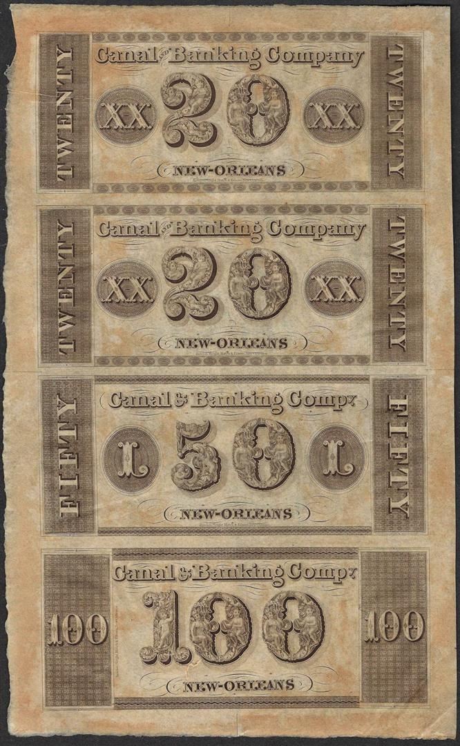One Uncut Sheet of 1800's Canal & Banking Co. Obsolete Notes.