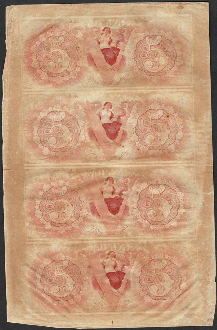 One Uncut Sheet of 1853 $5 Canal Bank Obsolete Notes.