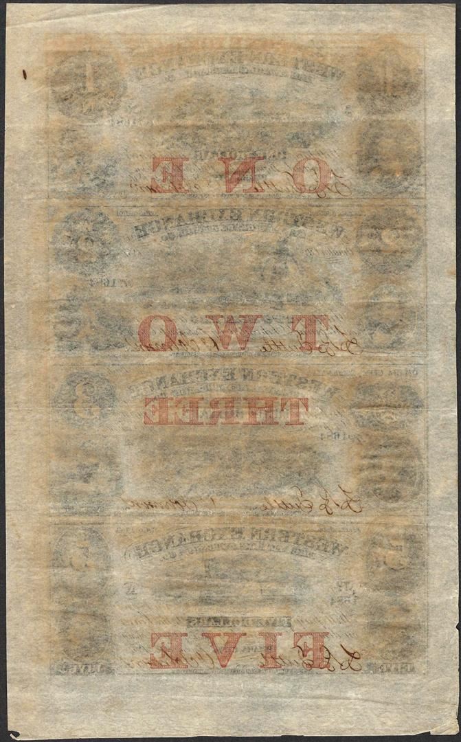 One Uncut Sheet of 1857 Western Exchange Fire & Marine Insurance Co. Obsolete Notes.