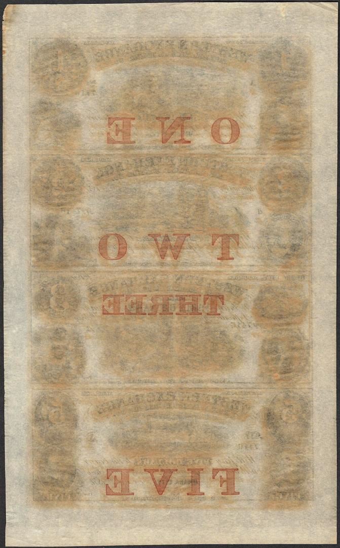 One Uncut Sheet of 1857 Western Exchange Fire & Marine Insurance Co. Obsolete Notes.