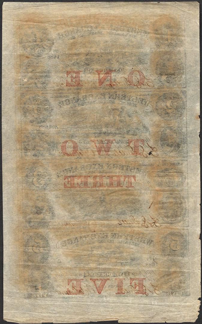 One Uncut Sheet of 1857 Western Exchange Fire & Marine Insurance Co. Obsolete Notes.