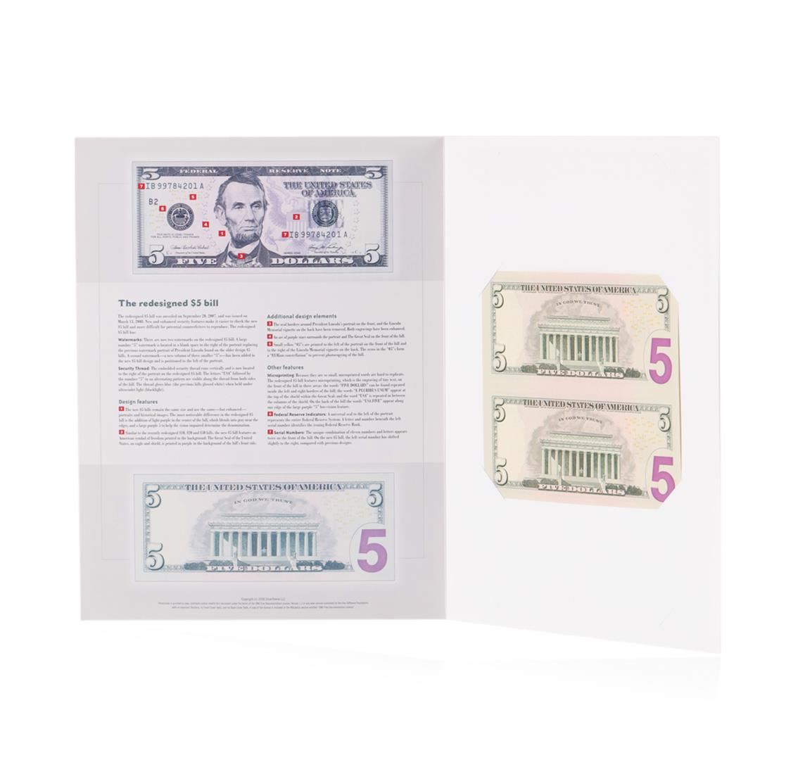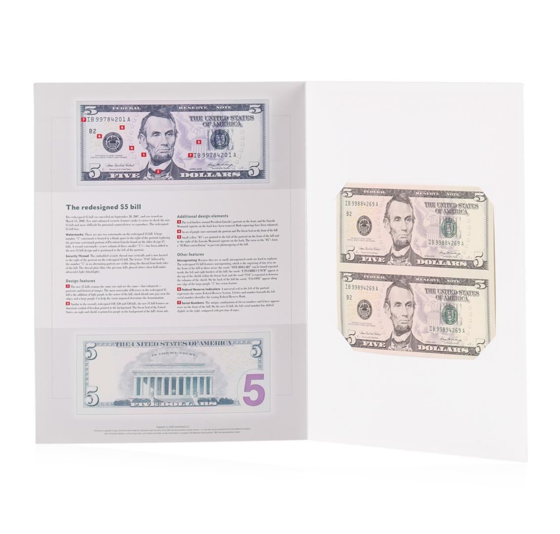 One Uncut Sheet of (2) 2006 $5 Federal Reserve Notes.