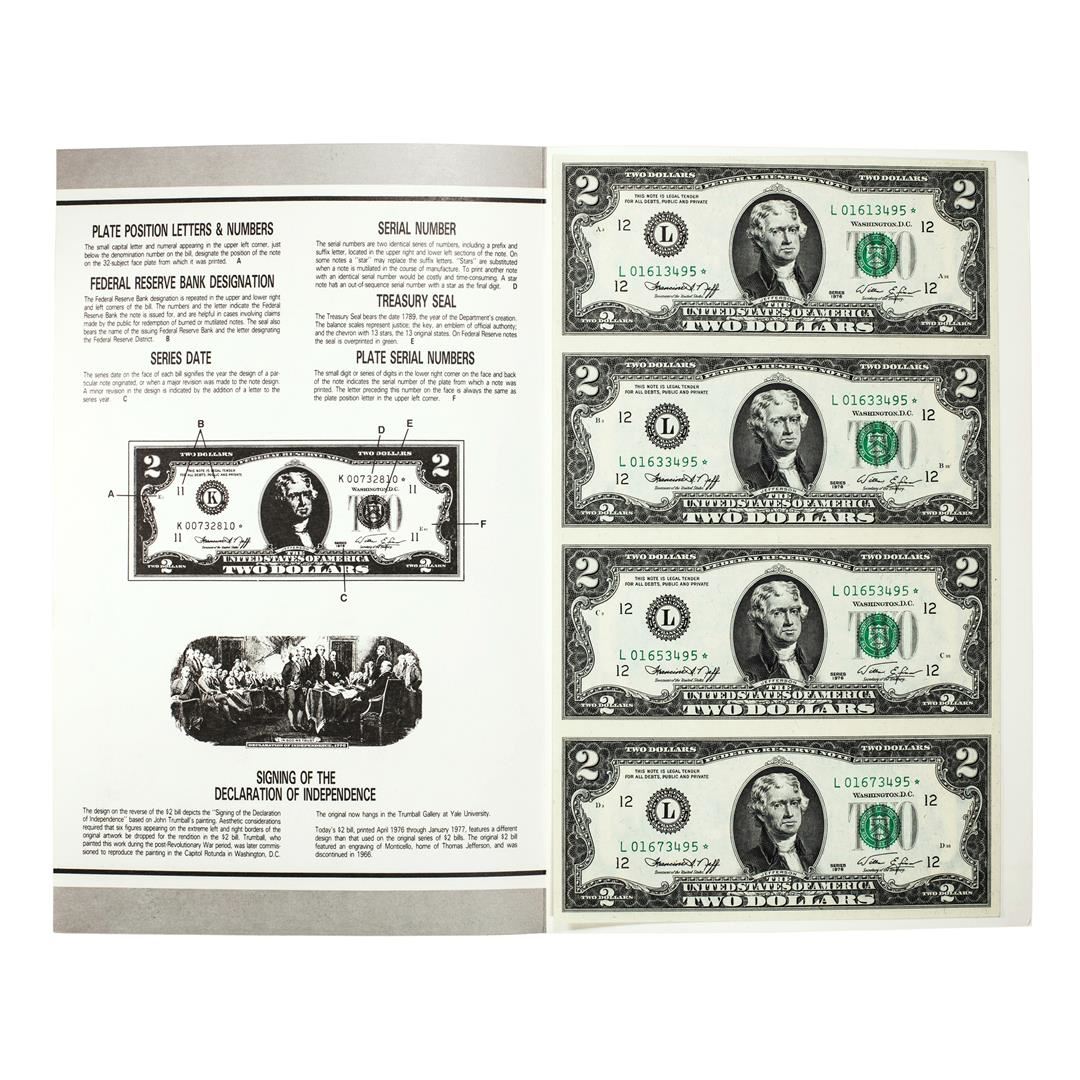 Uncut Sheet of (4) 1976 $2 Federal Reserve Star Notes San Francisco