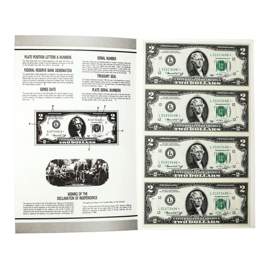 Uncut Sheet of (4) 1976 $2 Federal Reserve Star Notes San Francisco