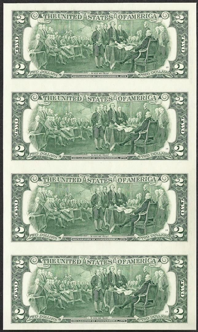 One Uncut Sheet of (4) 1995 $2 Federal Reserve Notes Atlanta.