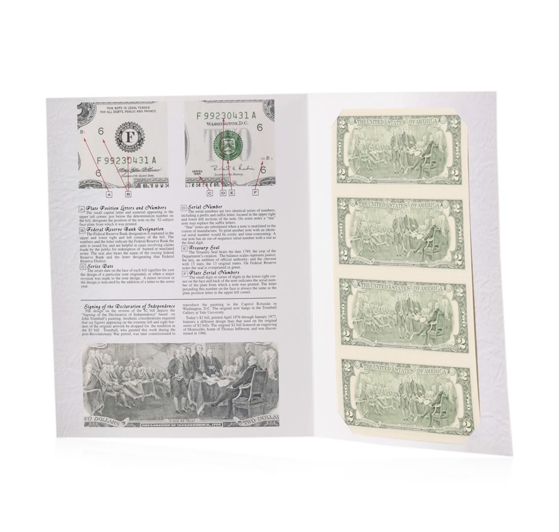 One Uncut Sheet of (4) 2003A $2 Federal Reserve Notes.
