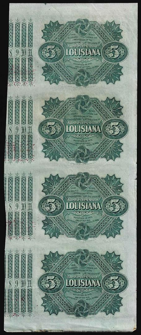 Uncut Sheet of (4) State of Louisiana Baby Bond Obsolete Notes