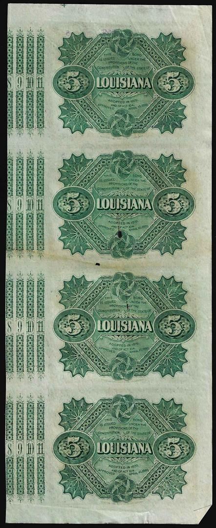One Uncut Sheet of (4) State of Louisiana Baby Bond Obsolete Notes.