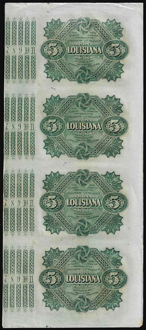 One Uncut Sheet of (4) State of Louisiana Baby Bond Obsolete Notes.