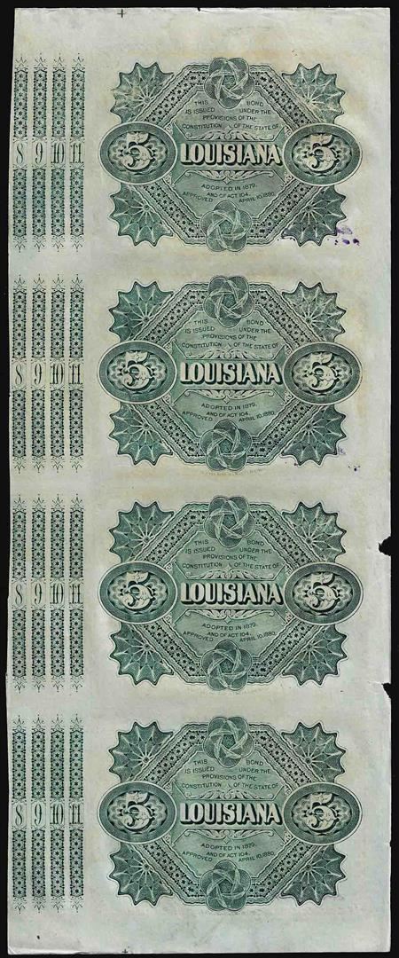 One Uncut Sheet of (4) State of Louisiana Baby Bond Obsolete Notes.