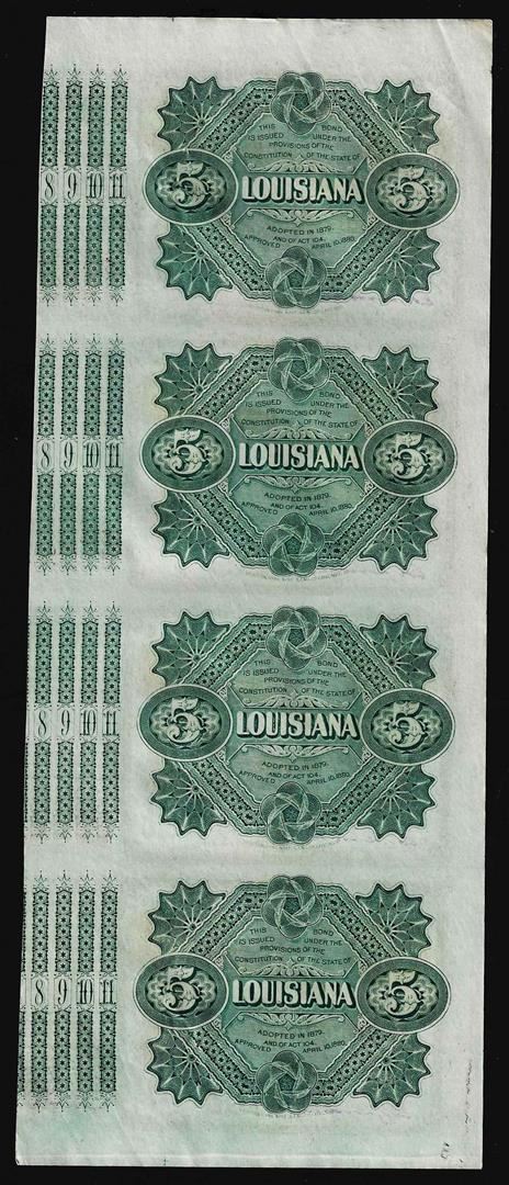 One Uncut Sheet of (4) State of Louisiana Baby Bond Obsolete Notes.