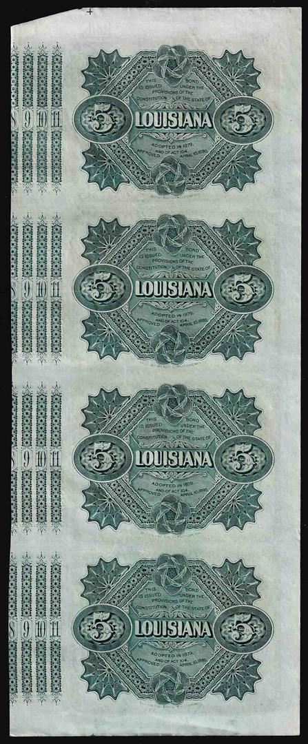 One Uncut Sheet of (4) State of Louisiana Baby Bond Obsolete Notes.
