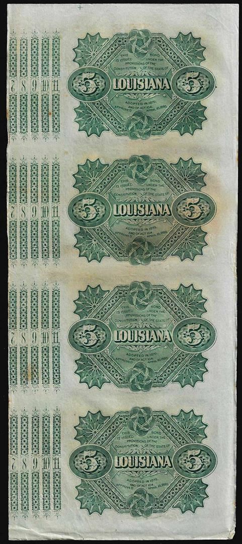Uncut Sheet of (4) State of Louisiana Baby Bond Obsolete Notes