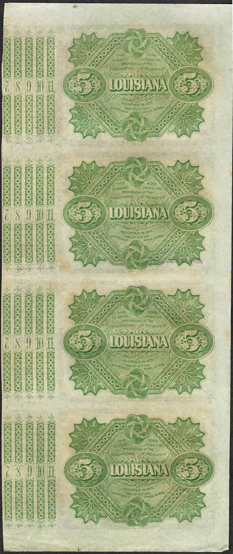 Uncut Sheet of (4) State of Louisiana Baby Bond Obsolete Notes