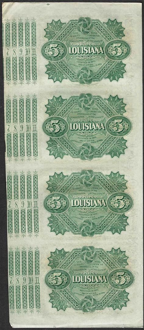 Uncut Sheet of (4) State of Louisiana Baby Bond Obsolete Notes