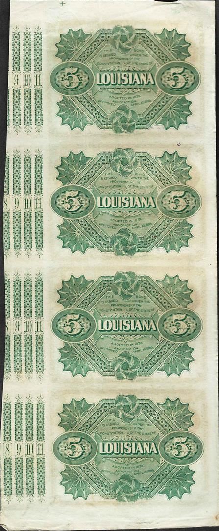 Uncut Sheet of (4) State of Louisiana Baby Bond Obsolete Notes