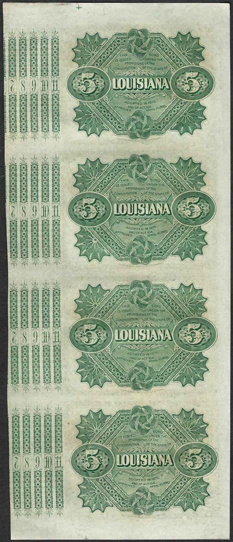 Uncut Sheet of (4) State of Louisiana Baby Bond Obsolete Notes