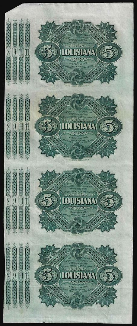 One Uncut Sheet of (4) State of Louisiana Baby Bond Obsolete Notes.