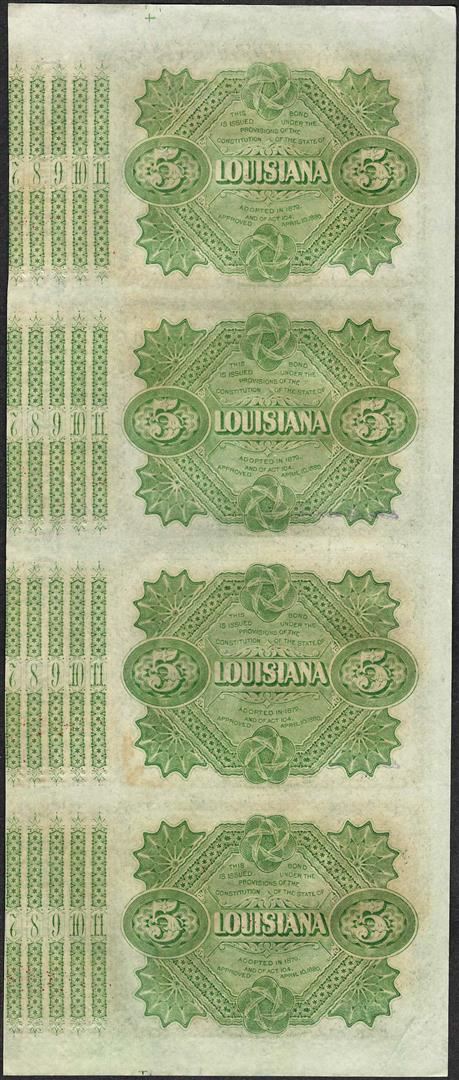 Uncut Sheet of (4) State of Louisiana Baby Bond Obsolete Notes