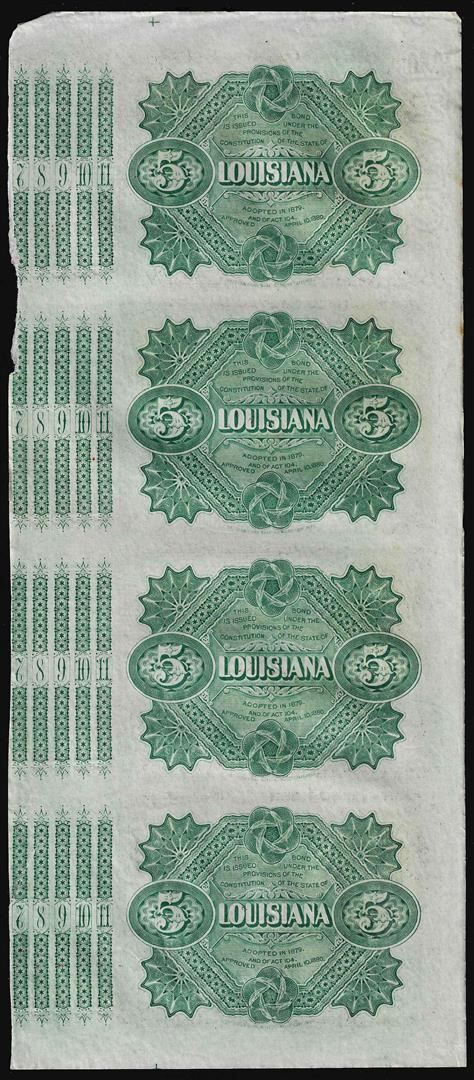 Uncut Sheet of (4) State of Louisiana Baby Bond Obsolete Notes