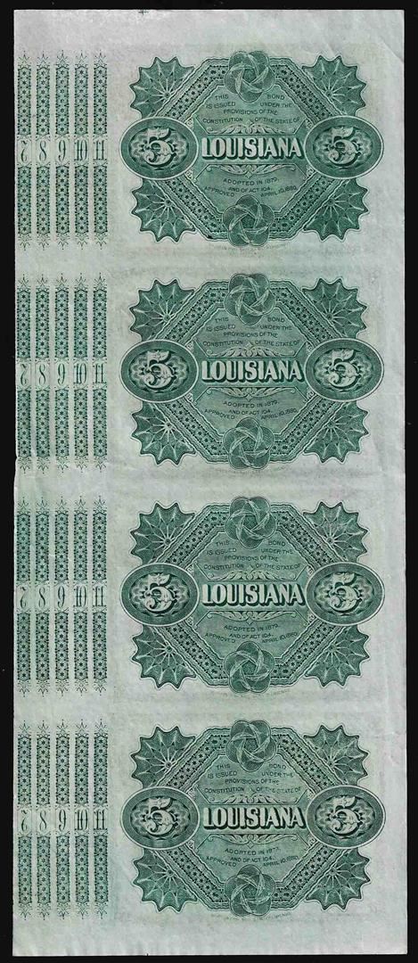 Uncut Sheet of (4) State of Louisiana Baby Bond Obsolete Notes