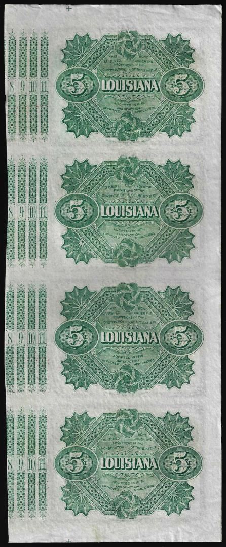 Uncut Sheet of (4) State of Louisiana Baby Bond Obsolete Notes