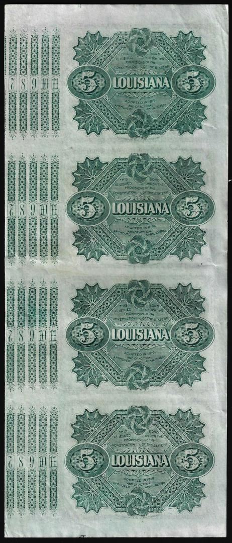 Uncut Sheet of (4) State of Louisiana Baby Bond Obsolete Notes
