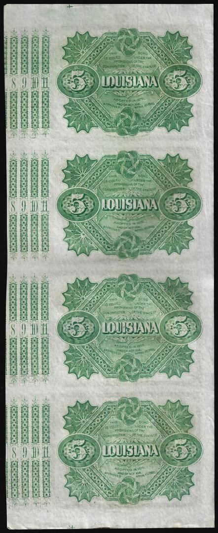 Uncut Sheet of (4) State of Louisiana Baby Bond Obsolete Notes
