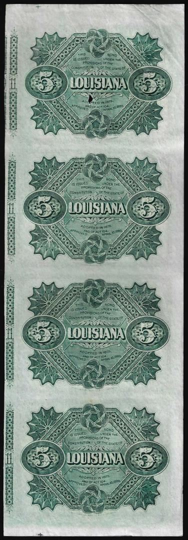 Uncut Sheet of (4) State of Louisiana Baby Bond Obsolete Notes