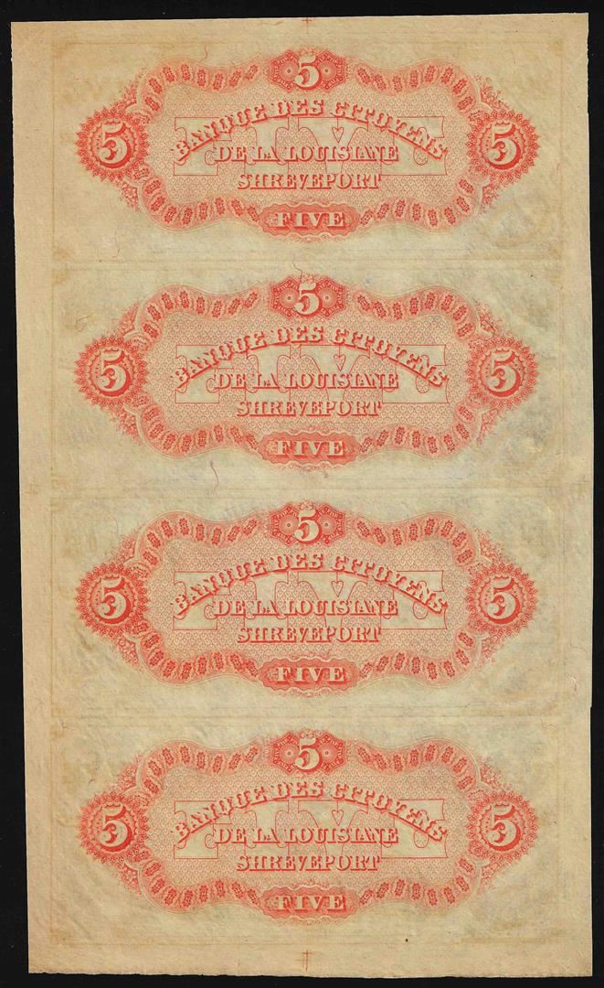 One Uncut Sheet of $5 Citizens Bank of Louisiana Obsolete Notes.