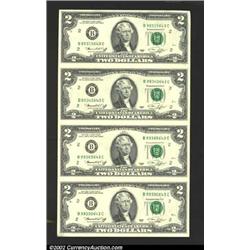 Uncut Sheet of four 1976 $2 Federal Reserve Notes, Fr-1935-B, Gem CU....