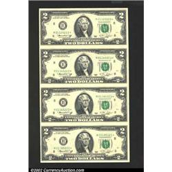 Uncut Sheet of four 1976 $2 Federal Reserve Notes, Fr-1935-L*, Gem CU....