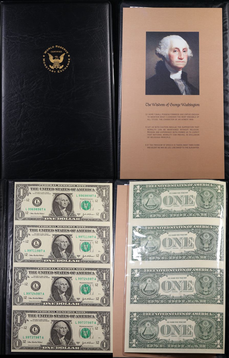 Uncut Uncirculated Sheet of 4x2003A $1 Bills in Folder w/ George Washington Portrait Grades Brillian