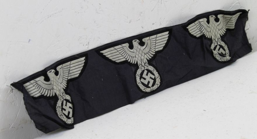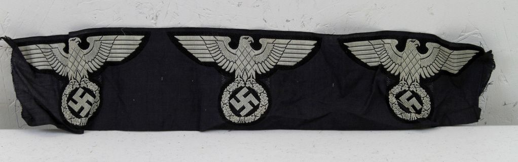 Uncut WWII Nazi Patches The Seller got these from a war veteran that with his quadrant over took the German Factory that made these patches and cut off a strip of them to take home (no paperwork on this). These patches also feature the original label on the back of each (3). This measures 3 3/4" wide 16.5" long.
